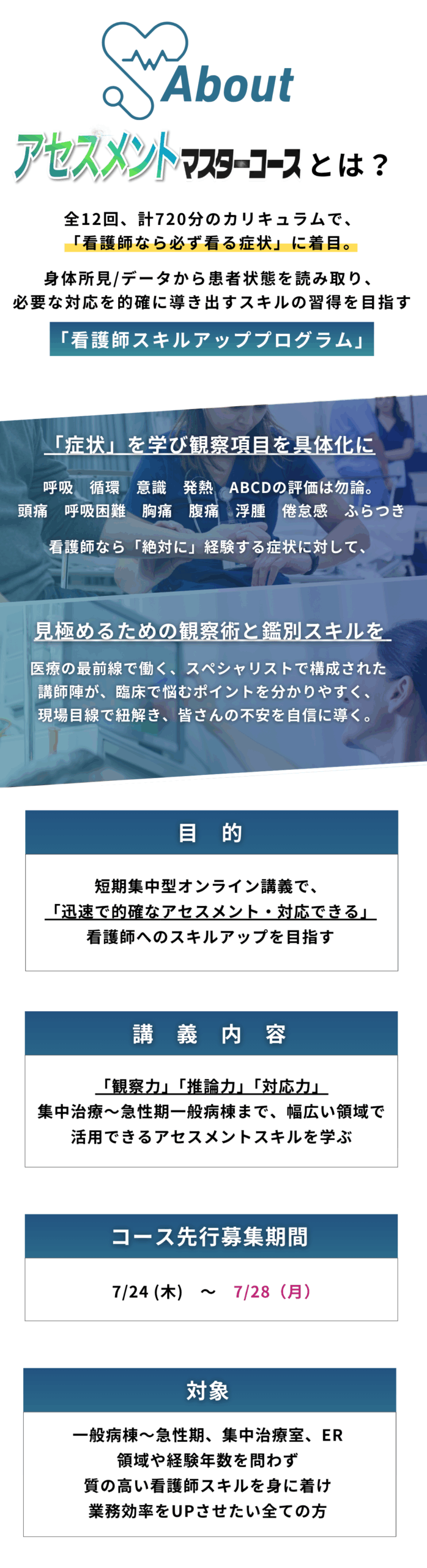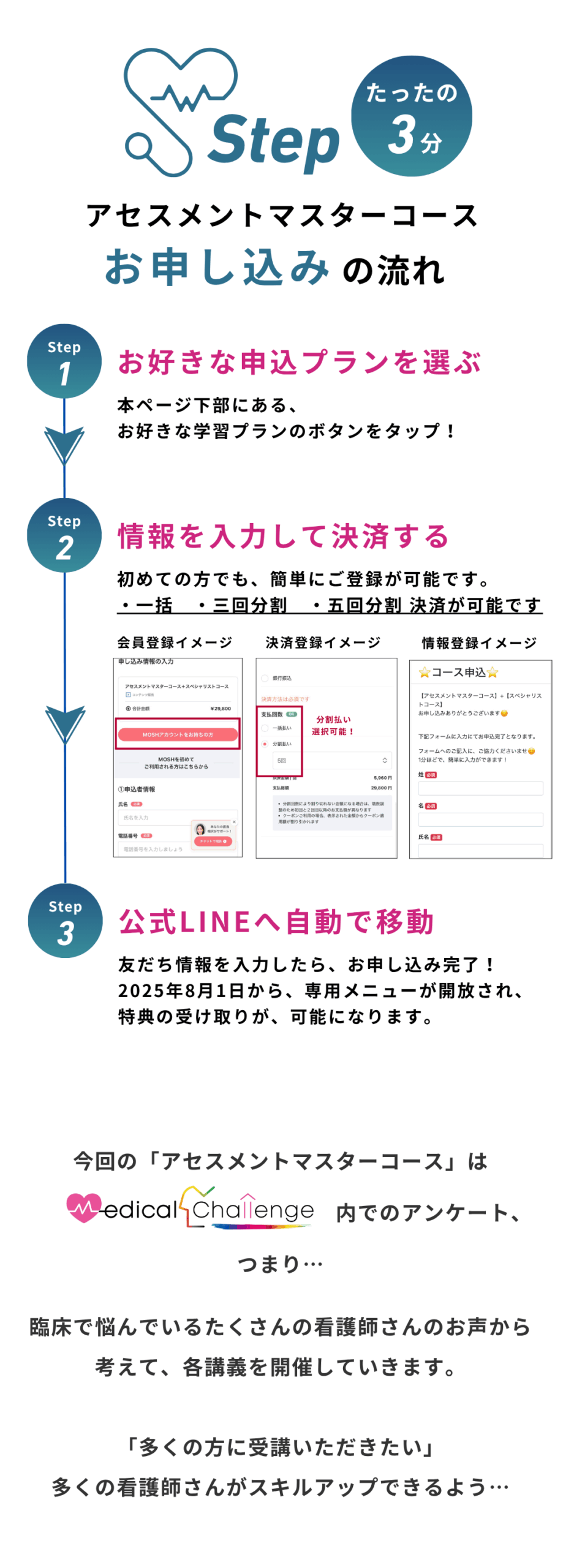 Medical Challenge アセスメントマスターコース/スペシャリストコース(以下、「当サービス」という。)は,ユーザーの個人情報について以下のとおりプライバシーポリシー(以下、「本ポリシー」という。)を定めます。本ポリシーは、当社がどのような個人情報を取得し、どのように利用・共有するか、ユーザーがどのようにご自身の個人情報を管理できるかをご説明するものです。